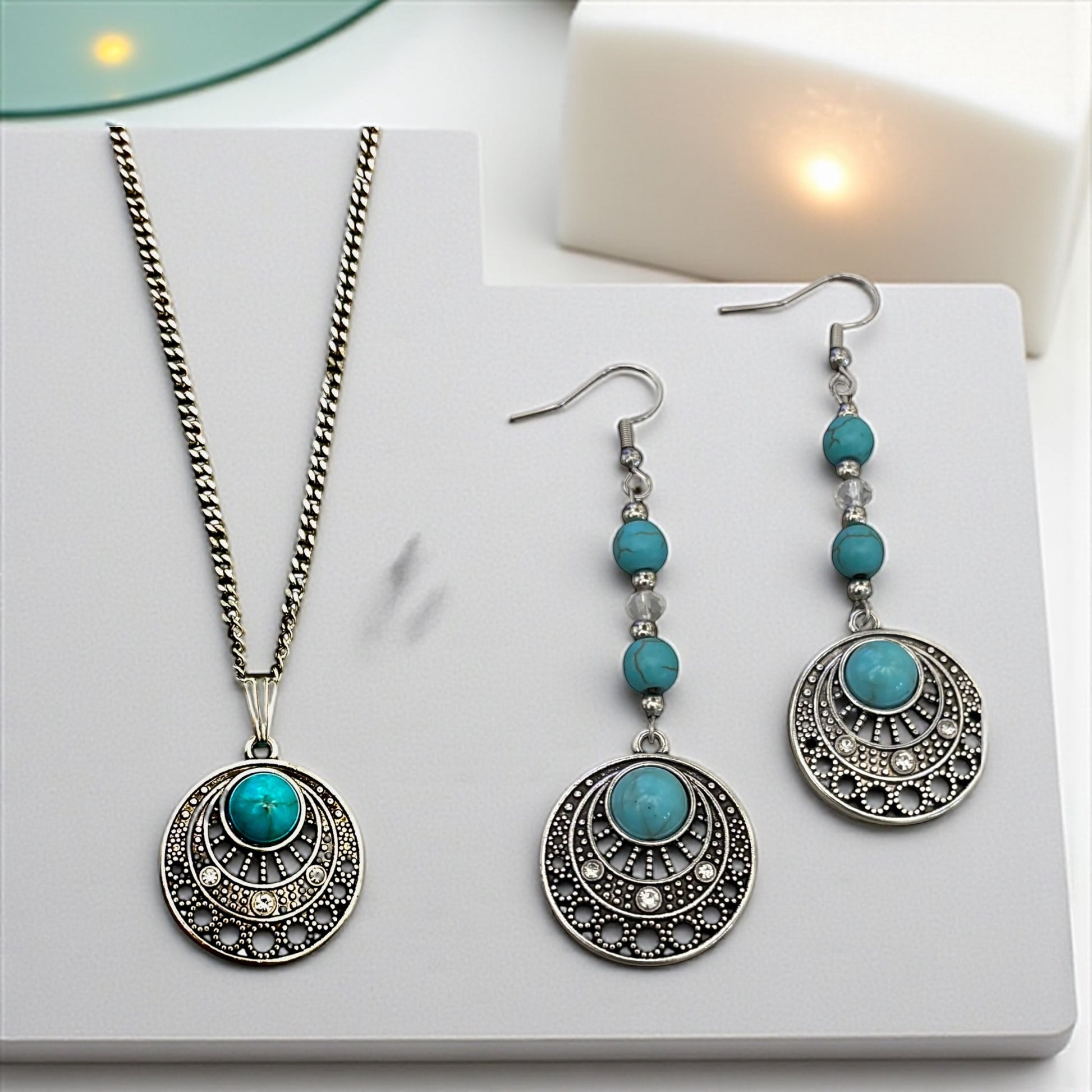 This handcrafted necklace & earring set brings calm, confidence, and timeless charm to any look.