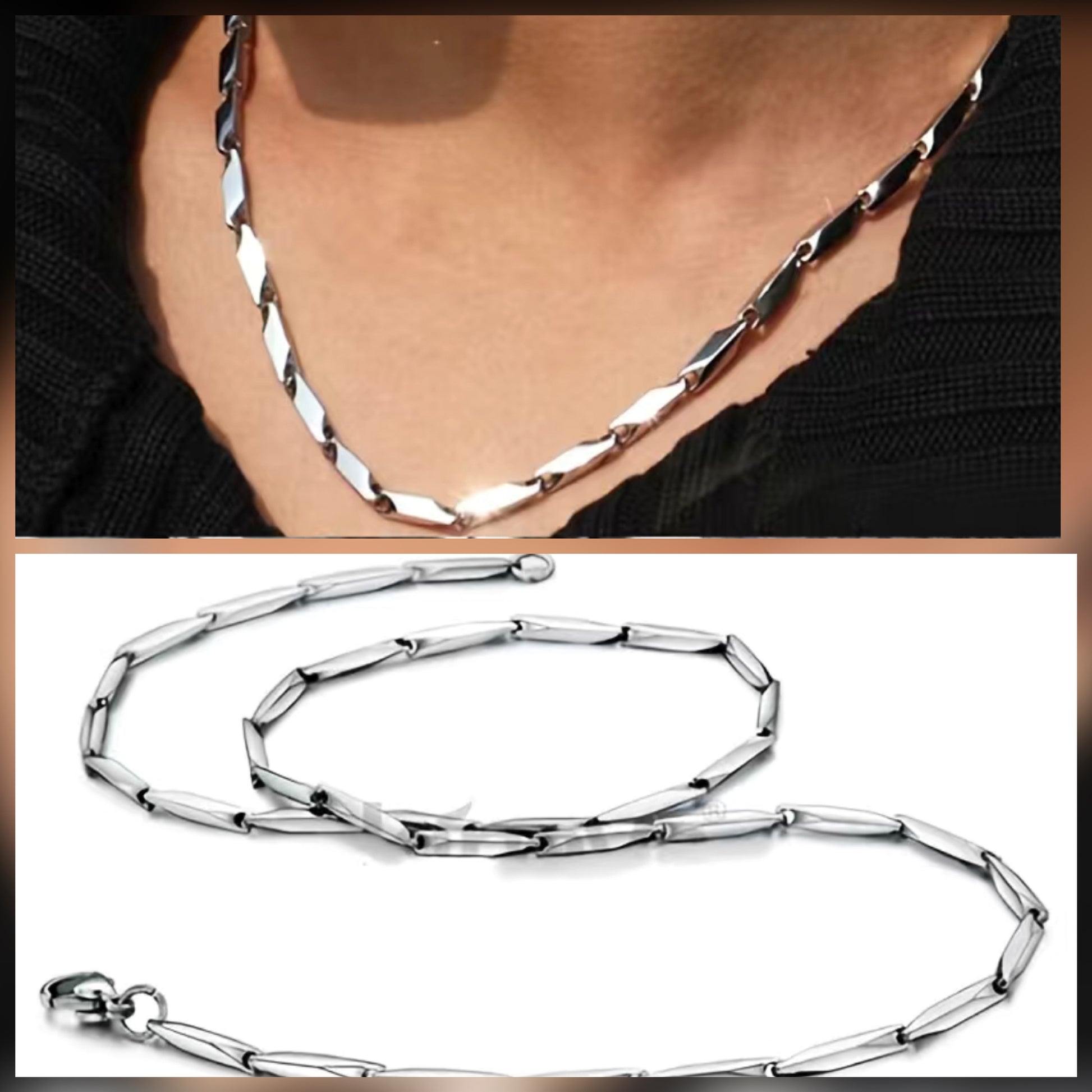 Elevate your style with this modern stainless steel necklace designed with sharp, geometric links that shine from every angle. Its sleek, polished finish makes it a versatile piece that works perfectly as both a men’s chain necklace and a women’s fashion necklace, giving you the best of both worlds.