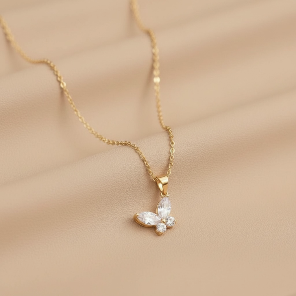 Delicate, graceful, and full of meaning, the Eliana Necklace features a beautifully crafted butterfly pendant adorned with sparkling crystal accents. The butterfly symbolizes transformation, hope, and new beginnings, making this necklace a meaningful piece to wear or gift.