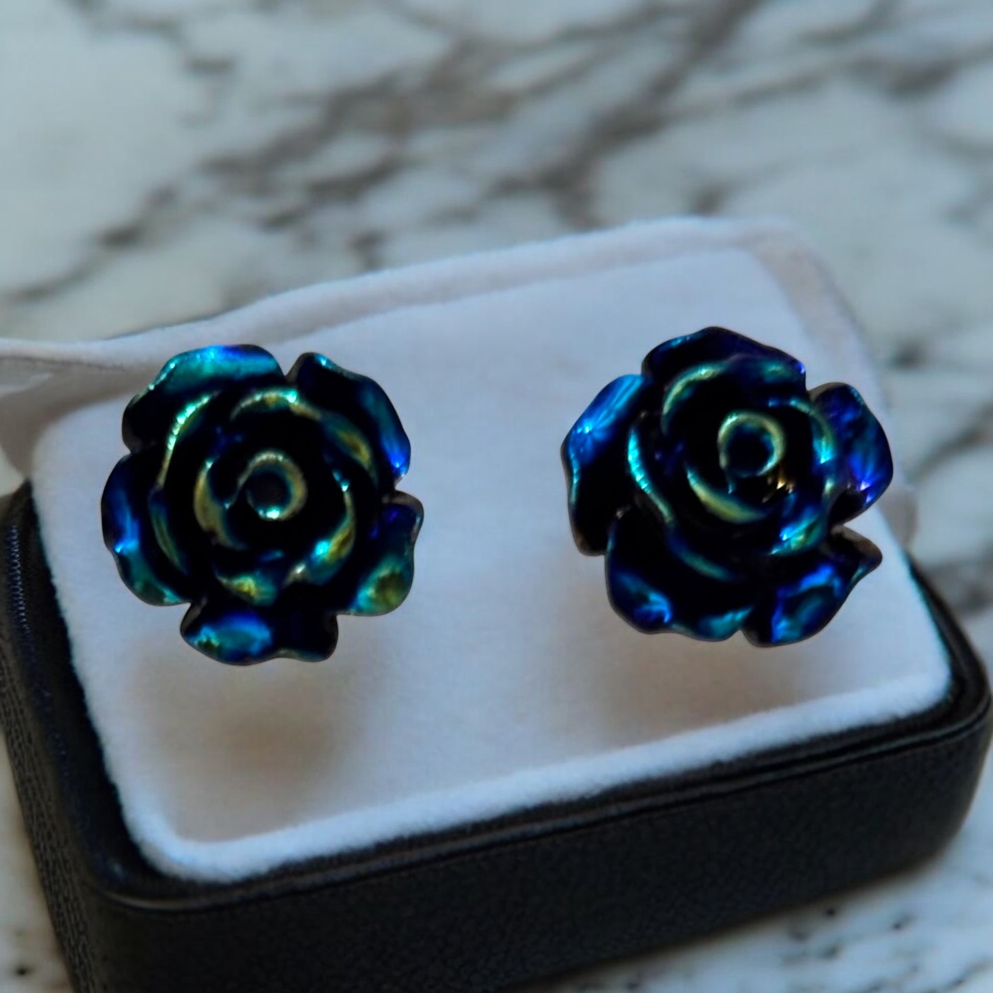 These stunning multi blue rose stud earrings, crafted from high-quality resin. These eye-catching earrings combine elegance and modern flair, making them the perfect addition to any outfit. Lightweight and comfortable, they are ideal for everyday wear or special occasions. Add a touch of floral charm to your jewelry collection and let your style bloom!