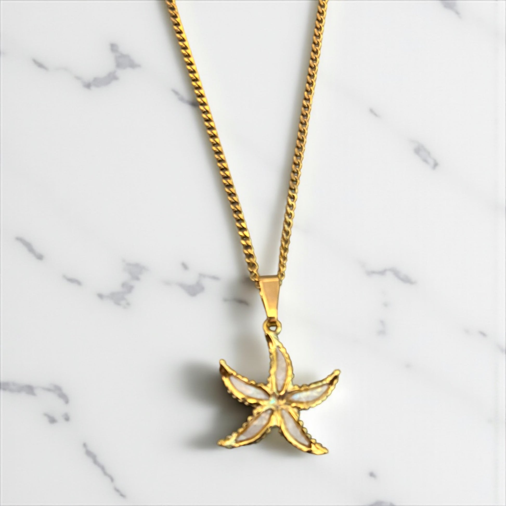Dive into elegance with our stunning gold starfish pendant, beautifully complemented by a delicate white shell. This charming piece captures the essence of coastal beauty, making it the perfect accessory for beach lovers and ocean enthusiasts alike. Embrace your love for the sea and let this pendant be a reminder of sun-soaked days and ocean breezes—an ideal gift for yourself or someone special!