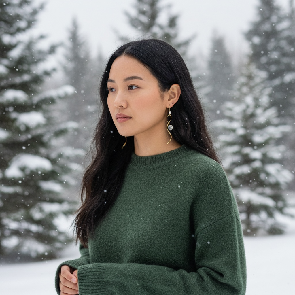 Zina’s Earrings showcase expertly twisted wire accented with a sparkling crystal square bead, creating a sophisticated and timeless accessory. Perfect for adding a subtle shimmer and elegant detail to any ensemble.